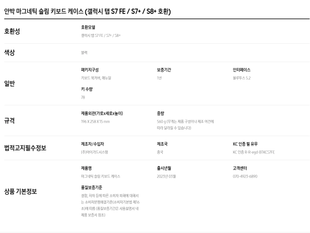 안박 키보드커버는 갤럭시 탭 S7+, S8+와 호환됩니다.