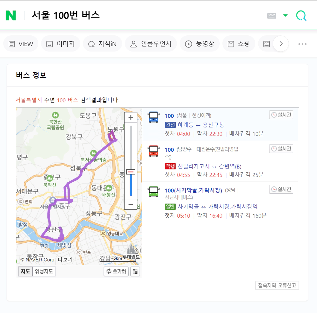 인터넷에서 서울 00번 버스라고 검색하셔도 알 수 있습니다