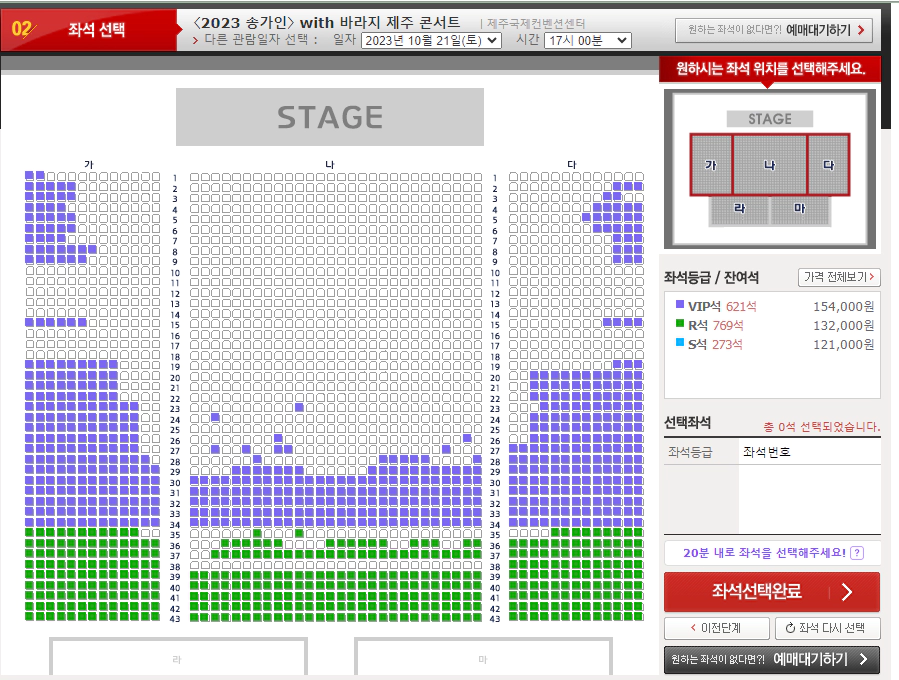 VIP석 : 621석 / 154,000원