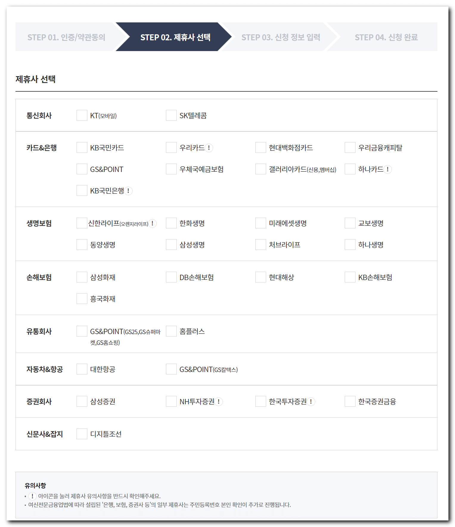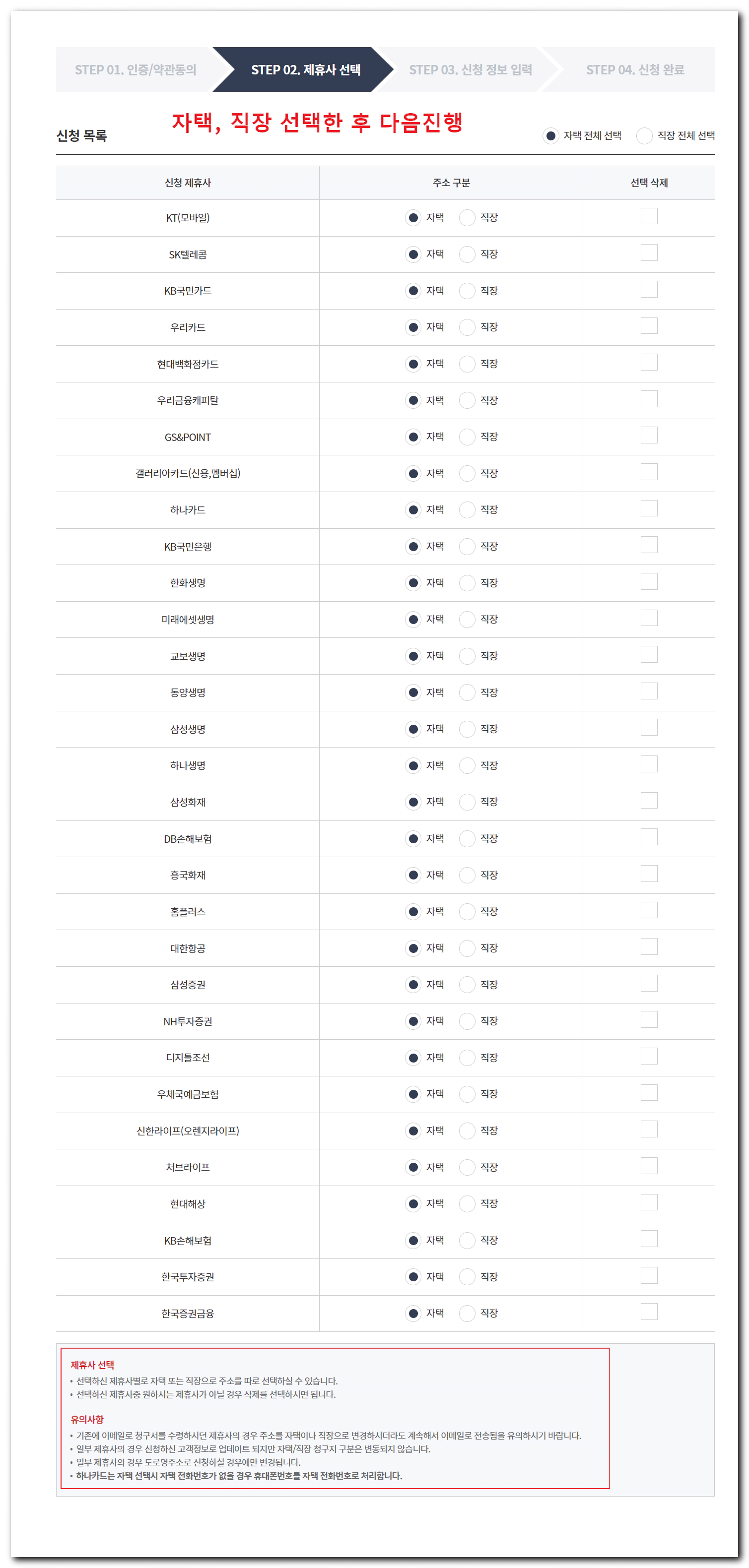주소변경 제휴사별 유의사항