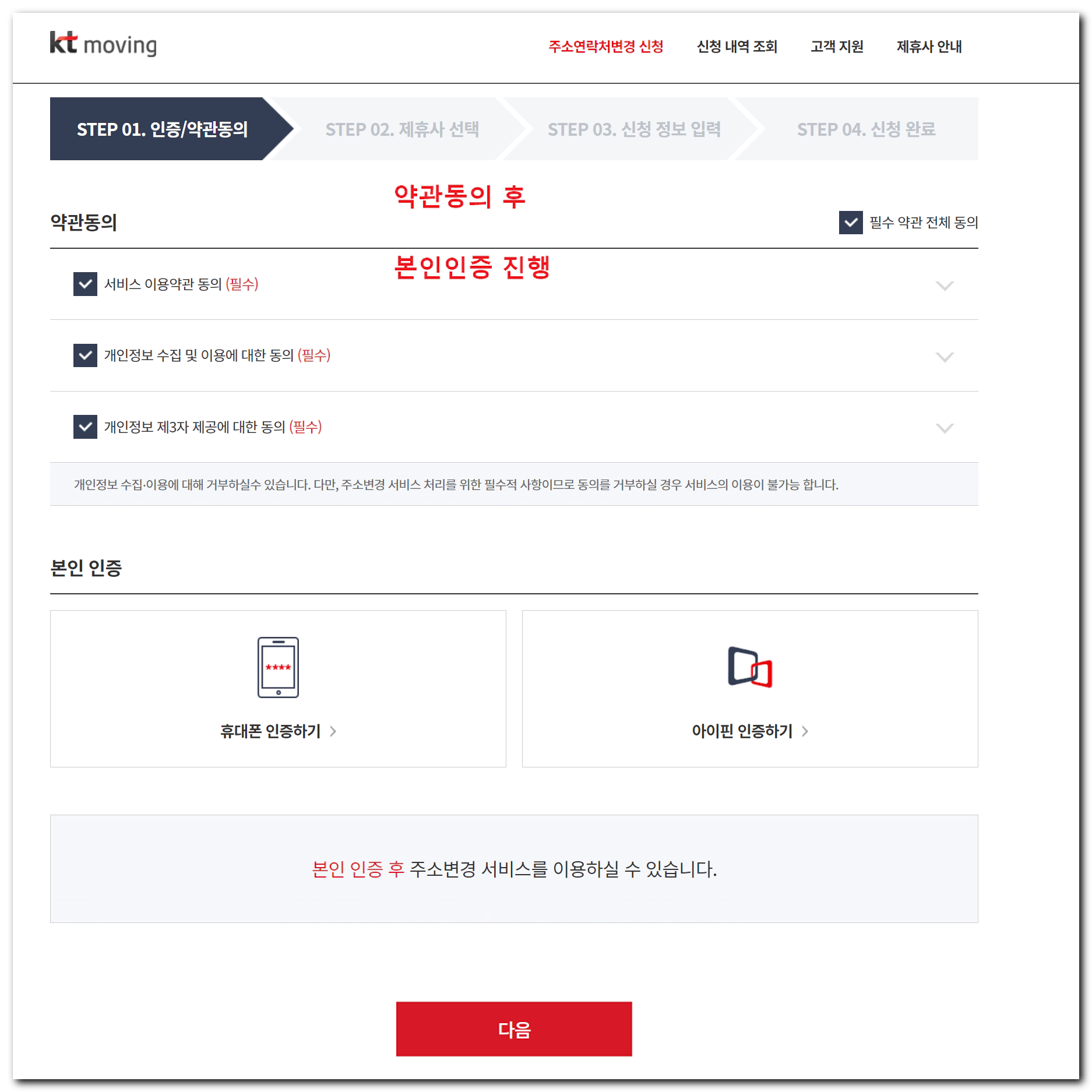 4. 약관동의 후 본인인증 진행