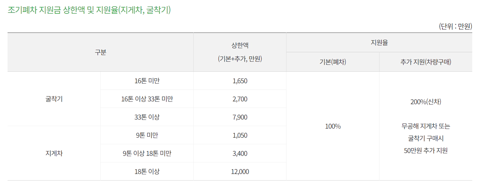 2) 기준가액 x 지원률(폐차만 하면 50%, 추가 차량구매 시 50% 적용)