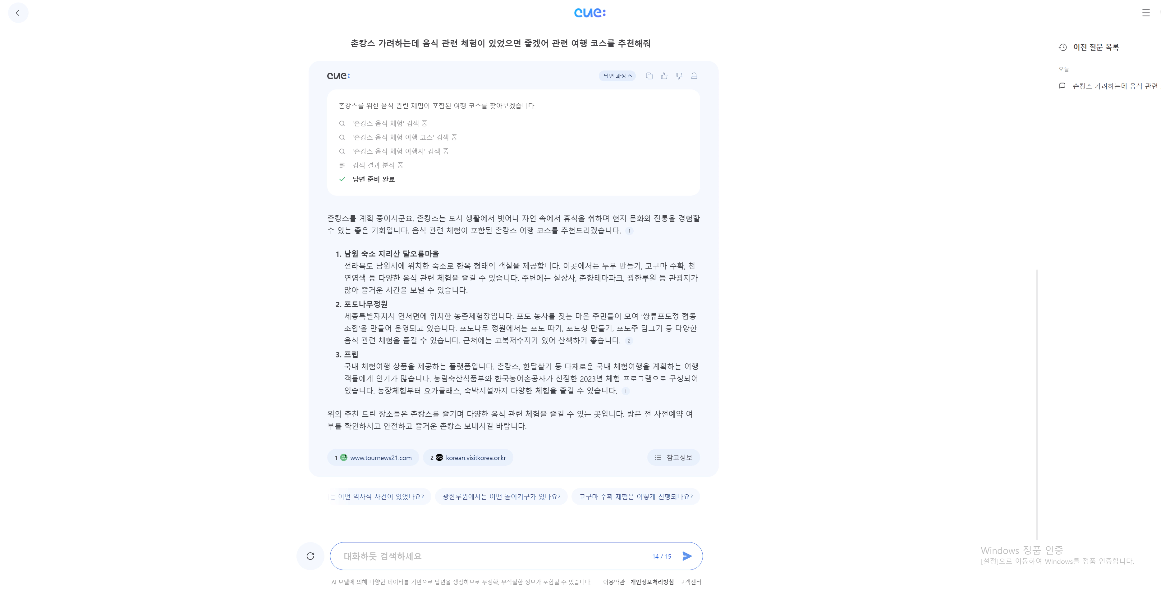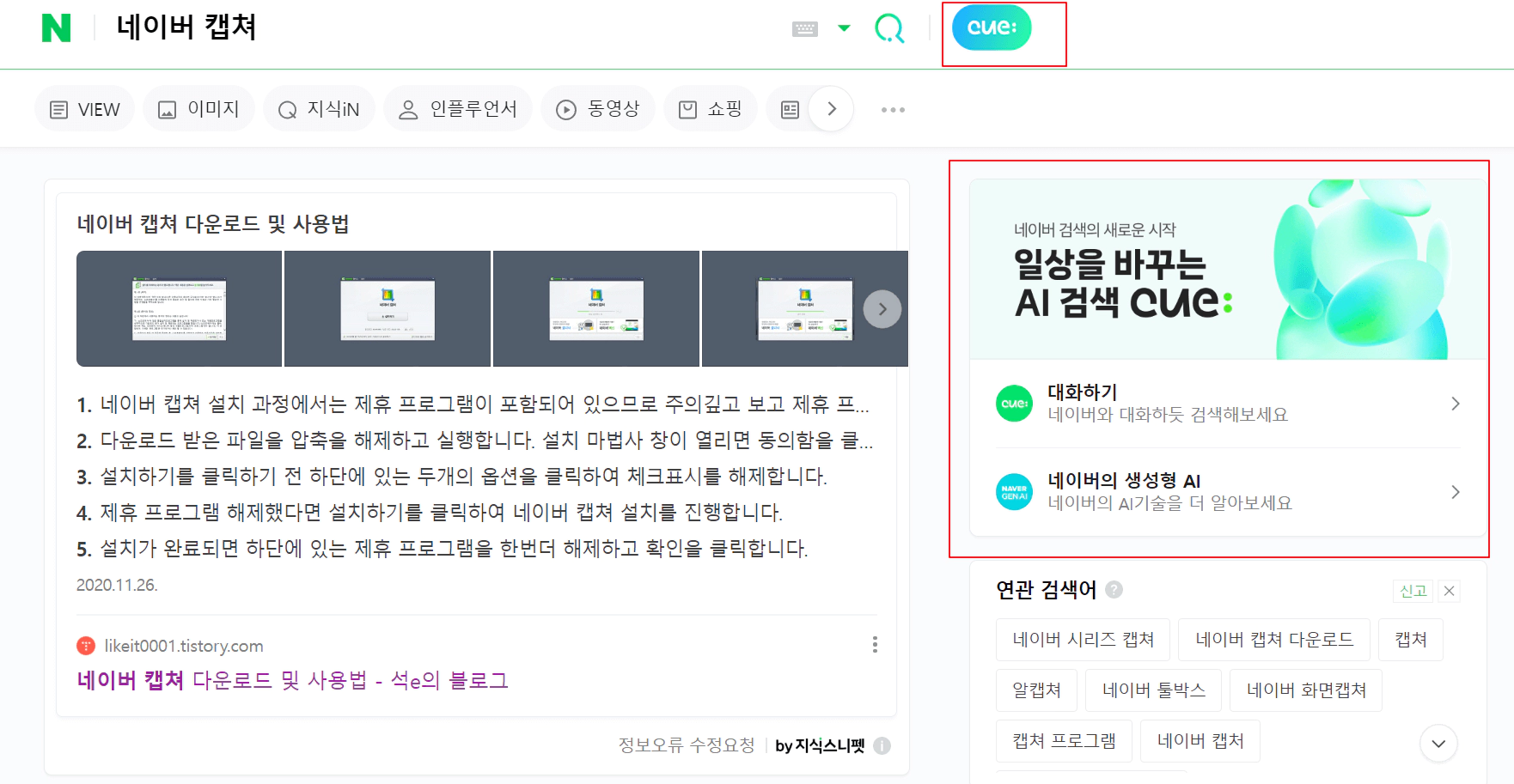 위 답변을 보고 네이버 Cue를 보니 정말 신기하였습니다
